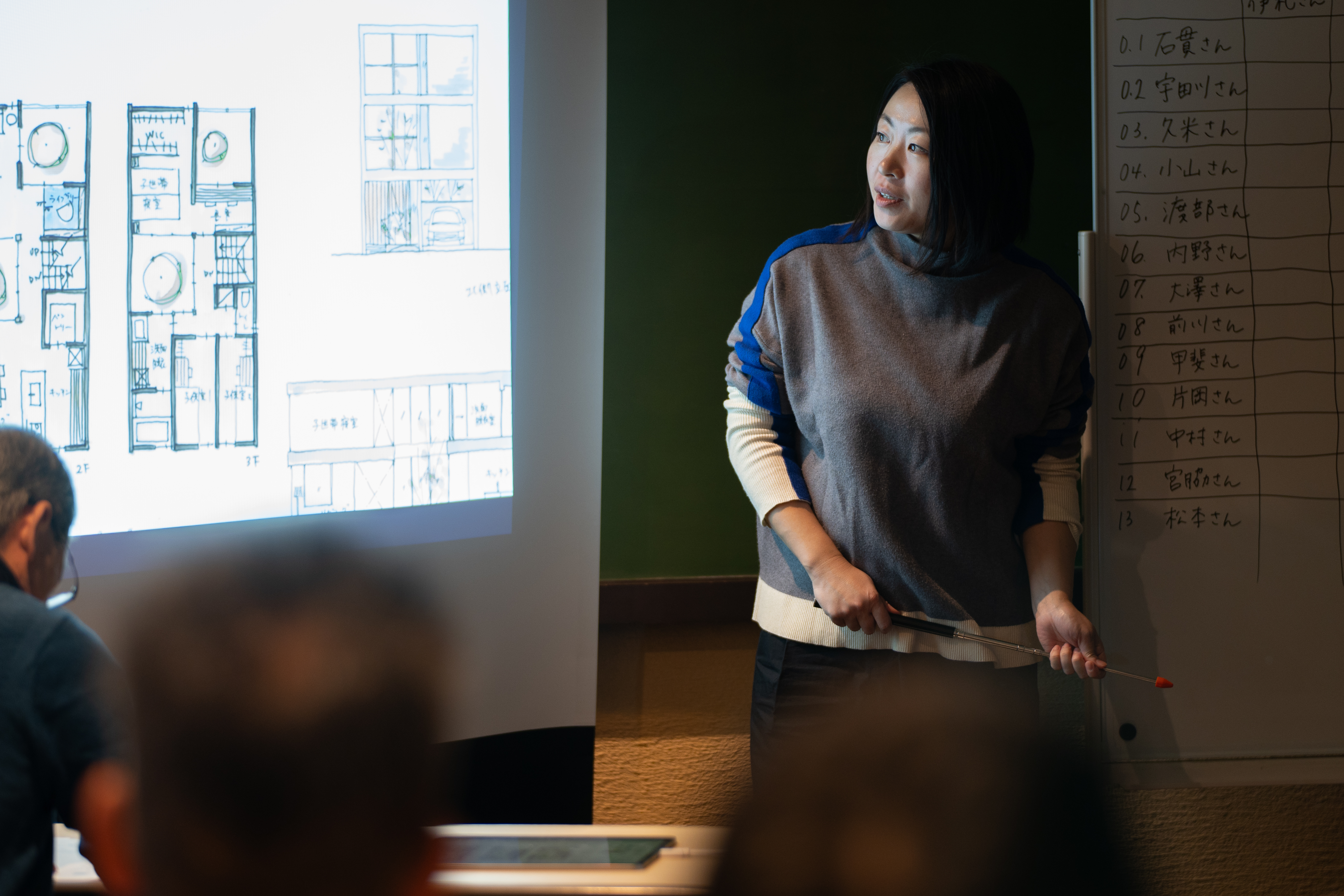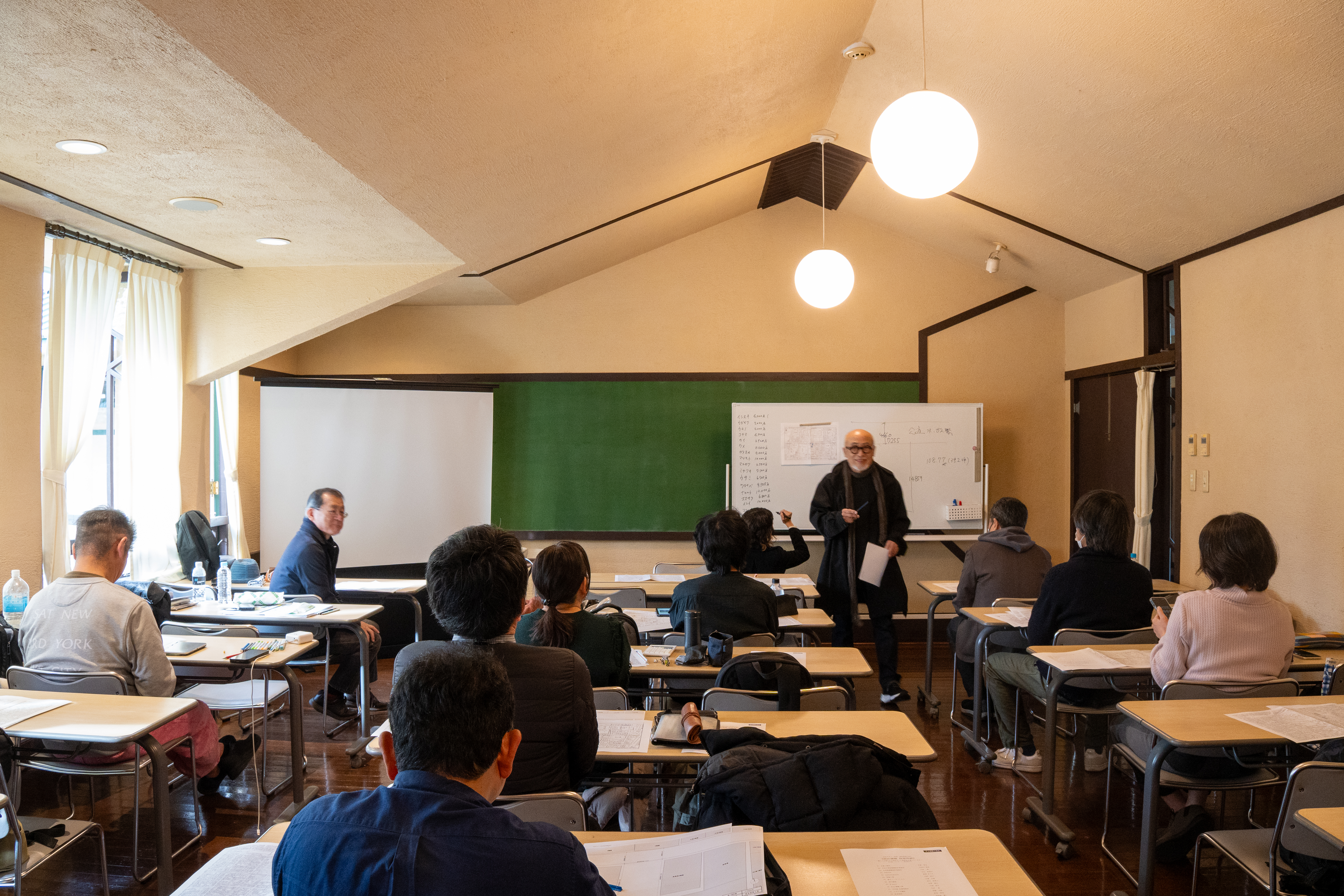 11月20日に、設計教室第2クール第3回を開催。第3回目のゲスト講師に竹原義二さんをお招きし、1921年に建てられた重要文化財「自由学園 明日館」の大教室タリアセンで実施いたしました。