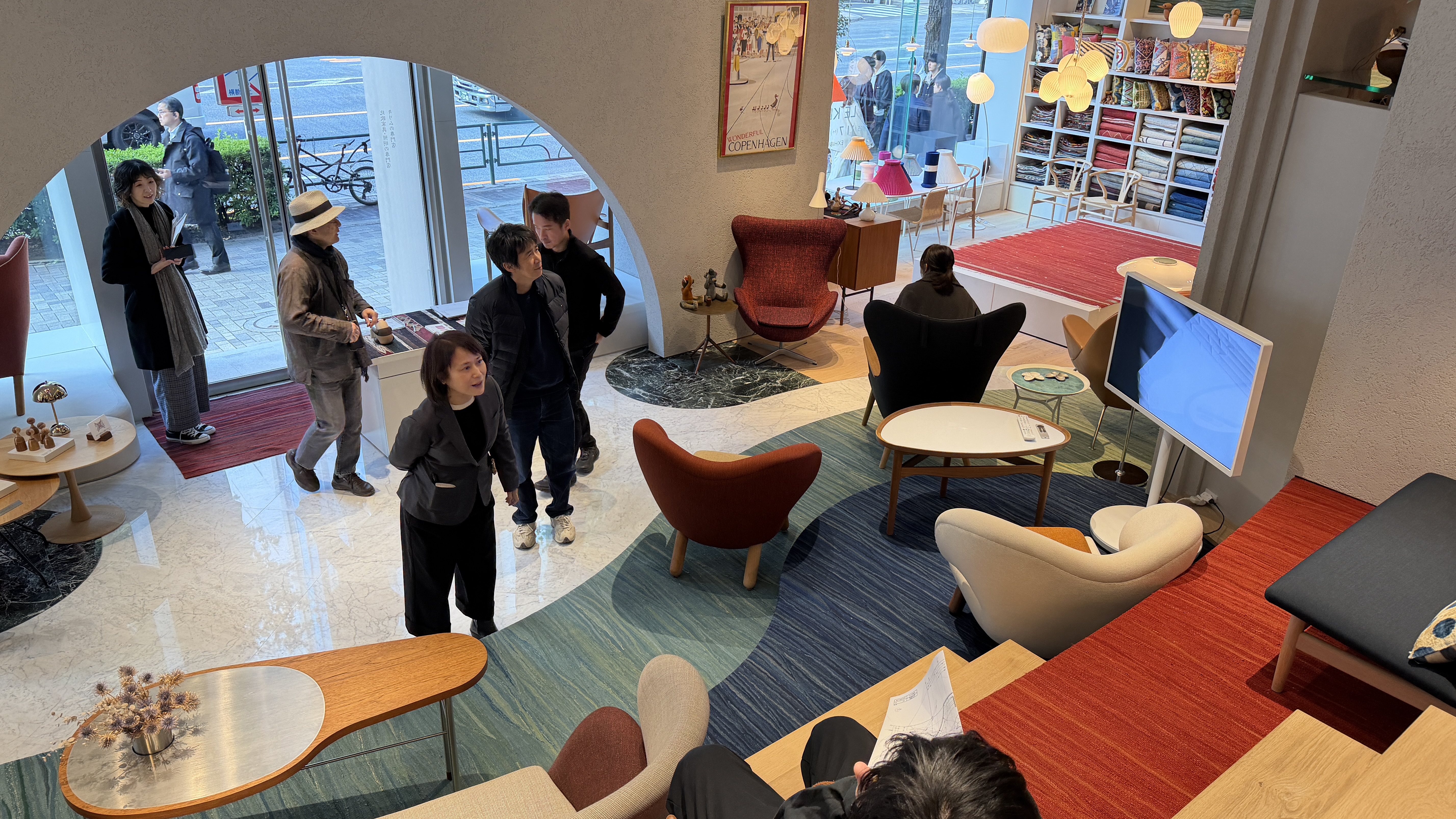 キリムや北欧家具を中心に扱う、大阪市に本社のあるロゴバさんの東京店。場所は東京都千代田区神田の商業地。1969年に完成した築60年のオフィスビルを2024年にリノベーションするタイミングで、そのビルの1Fにショールームとしてオープンしました。